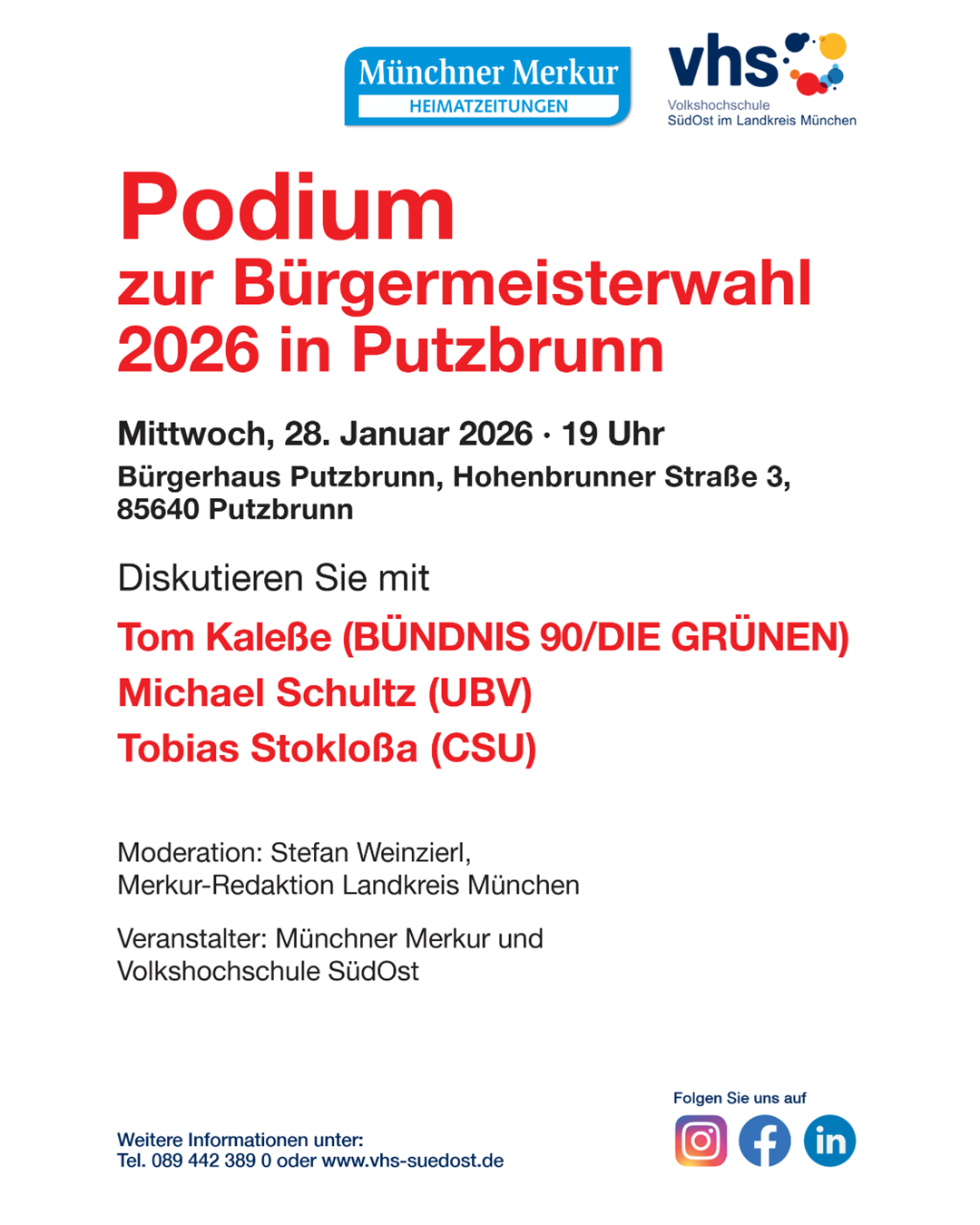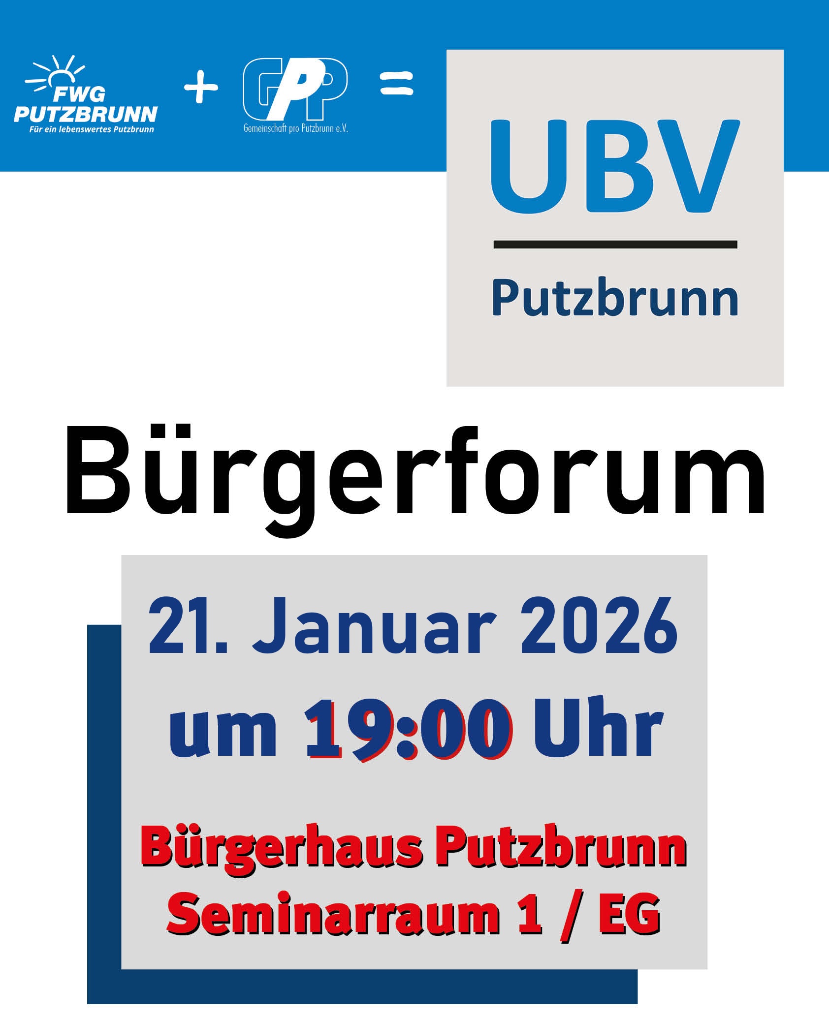 Restaurant Waldpark Parkstraße 1, Putzbrunn, GermanySenioren-Café mit unserem Bürgermeisterkandidat Michael Schultz und unseren Kandidierenden für den Gemeinderat am Samstag, 24.01.2026 ab 14:30 Uhr im Restaurant […]