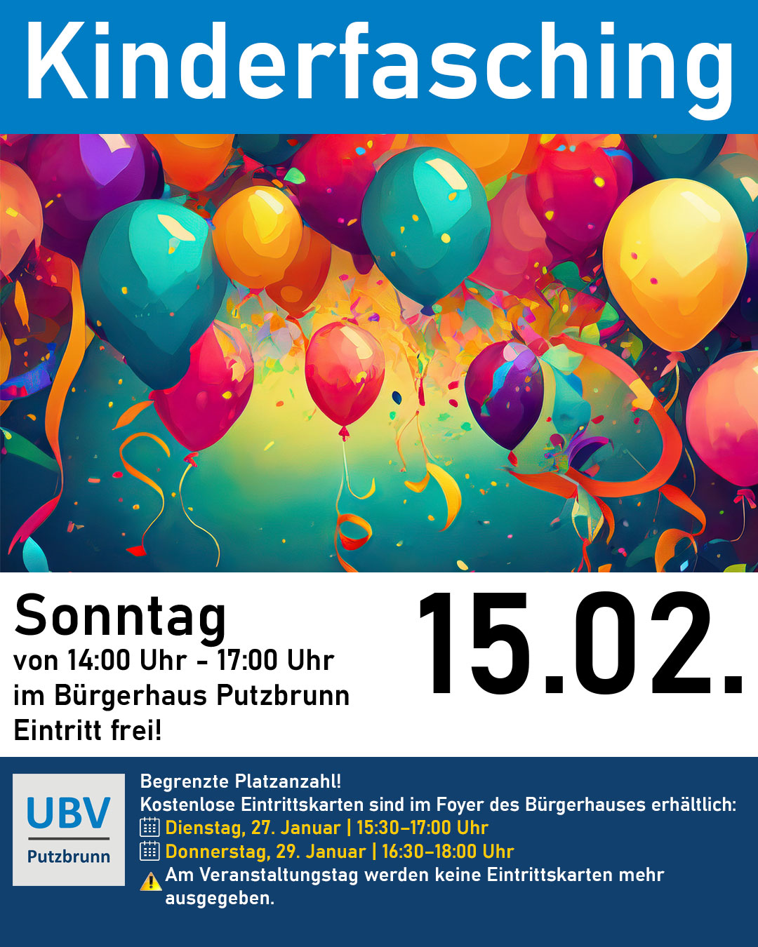 Kinderfasching am Samstag, 15.02.2026 von 14:00 bis 17:00 Uhr im Großen Saal des Bürgerhauses. Begrenzte Platzanzahl! Kostenlose Eintrittskarten sind im […]